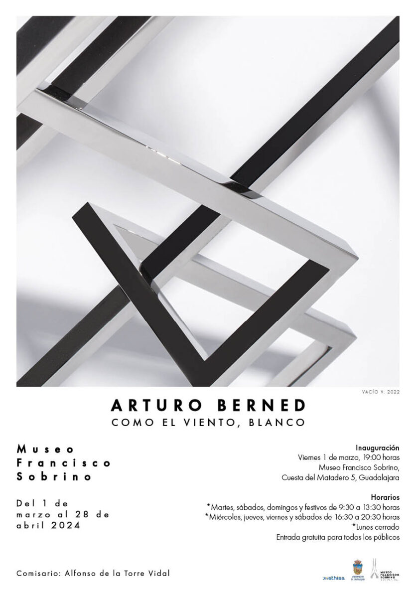 El viernes 1 de marzo, en el Museo Francisco Sobrino de Guadalajara (https://museofranciscosobrino.guadalajara.es/ ), abrirá sus puertas la exposición de Arturo Berned, titulada «Como el viento, blanco» que se podrá visitar hasta el 28 de abril. La muestra estará bajo la dirección del comisario y teórico del Arte, Alfonso de la Torre.