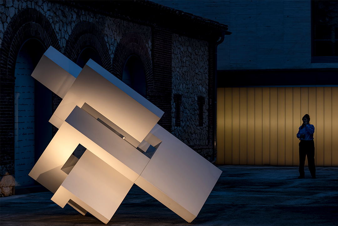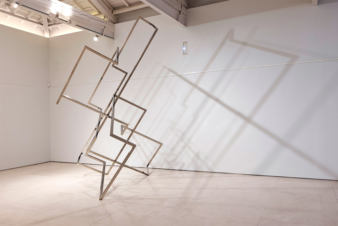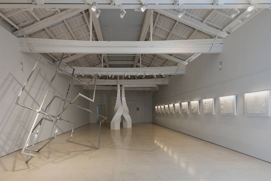 Remata la exposición una pieza de más de tres metros de altura titulada «VACÍO V», que por efecto de la incidencia de la luz se proyecta en suelo y paredes, invitando a la reflexión y la contemplación.