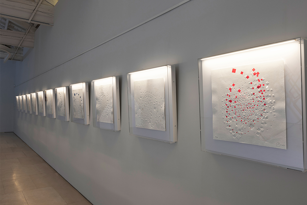 Arturo Berned ha seleccionado este espacio para presentar su obra en papel, «SIROCO», «OSTRO» Y «LEBECHE», donde el color blanco y las sombras se erigen como protagonistas indiscutibles.